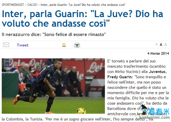 瓜林抱怨未能加盟尤文是天意 曾与经纪人大闹国米总部
