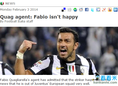 夸利亚雷拉经纪人炮轰尤文高层 怒言客户遭到不公待遇