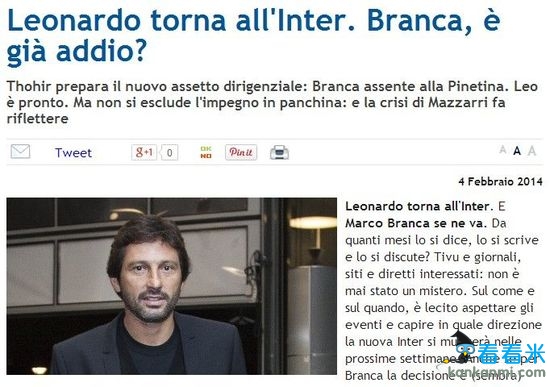 布兰卡季末离开国米成定局 前主帅莱昂纳多回归接任
