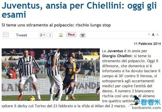 噩耗!基耶利尼恐缺4周 错过都灵德比无缘战米兰