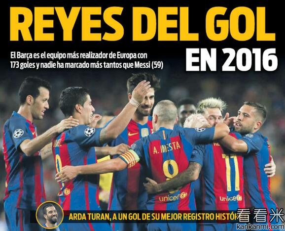 2016年进球数:巴萨全欧第一