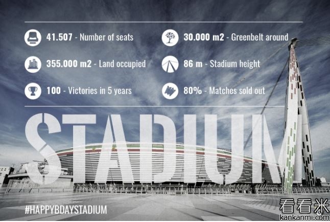 尤文图斯球场投入使用5周年,129场比赛100胜