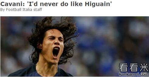 卡瓦尼谈伊瓜因转会:我绝不会那么做
