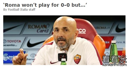 斯帕莱蒂:欧冠资格赛第二回合球队不会追求0:0