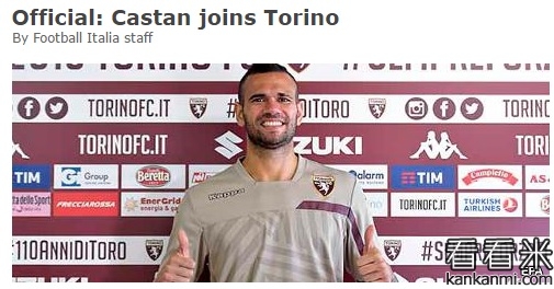 官方:巴西后卫卡斯坦加盟都灵