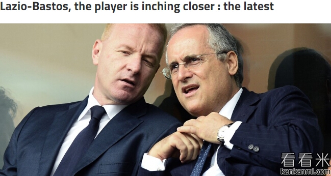 巴斯托斯接近加盟拉齐奥,最快明天确定