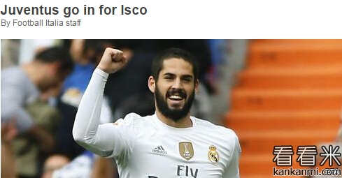 西媒:尤文将在明天报价伊斯科