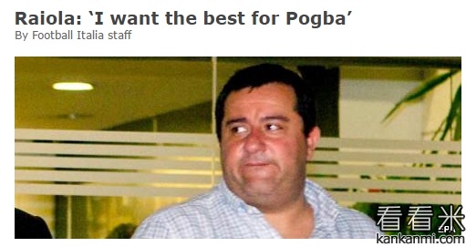 拉伊奥拉:只考虑博格巴的利益 不在乎转会费
