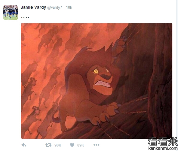 瓦尔迪个人推特发图回应凯恩