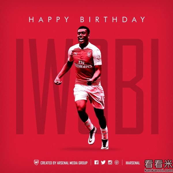 阿森纳官推祝伊沃比20岁生日快乐