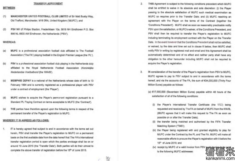 德佩合同曝光 转会费3400万欧元