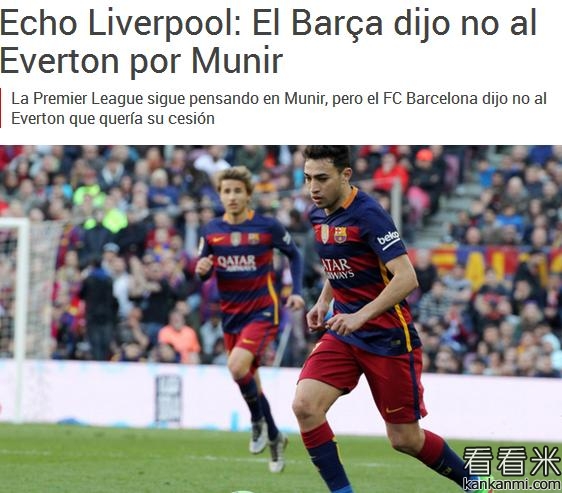 巴萨冬窗回绝埃弗顿求购穆尼尔