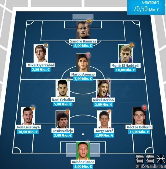 西班牙U20最贵11人阵容出炉
