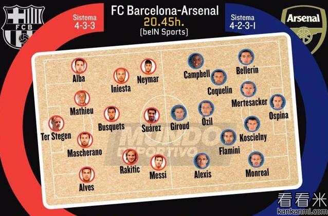 西媒预测巴萨阿森纳首发阵容
