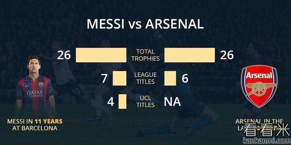一图揭阿森纳尴尬 60年荣誉遭梅西完爆
