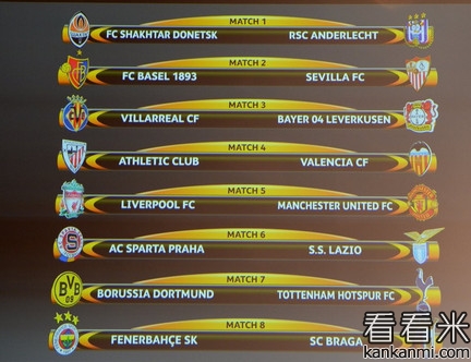 欧联杯16强解签:精彩程度不亚欧冠