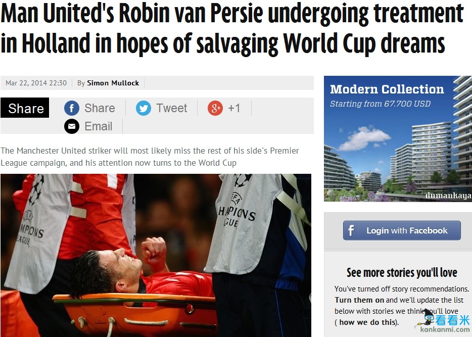 范佩西恐缺席世界杯 曼联范大将军受伤加重已回荷兰