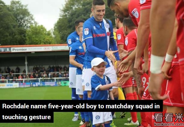 英甲球队将5岁重病男孩选入比赛替补