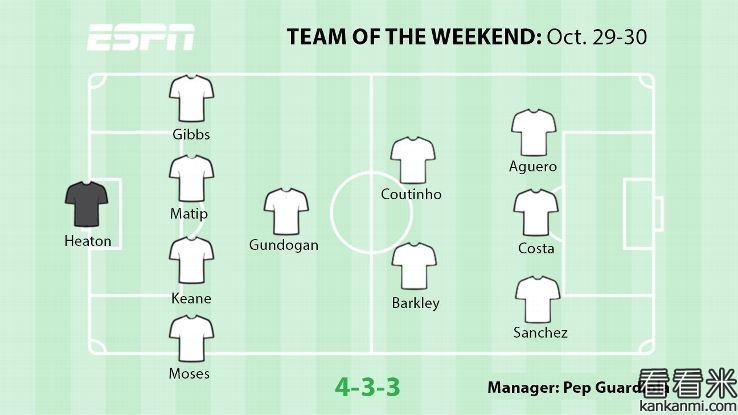 ESPN评选:2016/2017赛季英超第十轮红榜