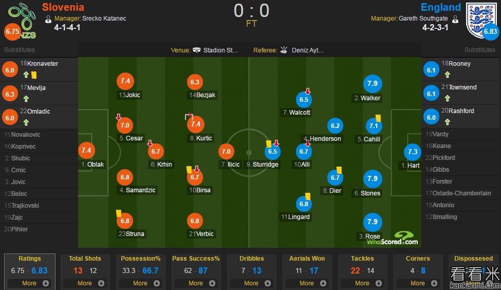 斯洛文尼亚vs英格兰评分:英格兰3人7.9