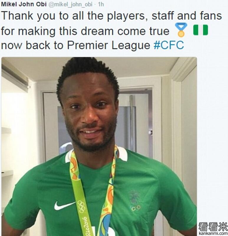 米克尔推特晒奥运奖牌:梦想成真