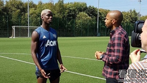 亨利来到卡林顿训练基地采访博格巴