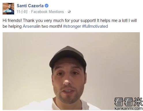 卡索拉:枪迷们别担心,两个月后我就回来