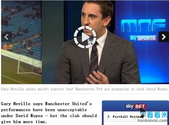 曼联解雇莫耶斯加里内维尔为其出头 应给大卫两年时间
