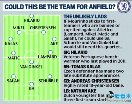 切尔西基本确认二线队战红军 主力备战欧冠曼城傻眼
