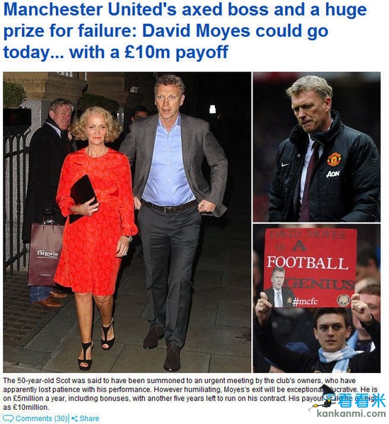 全英疯传莫耶斯下课 曼联若解雇他至少要赔1000万镑