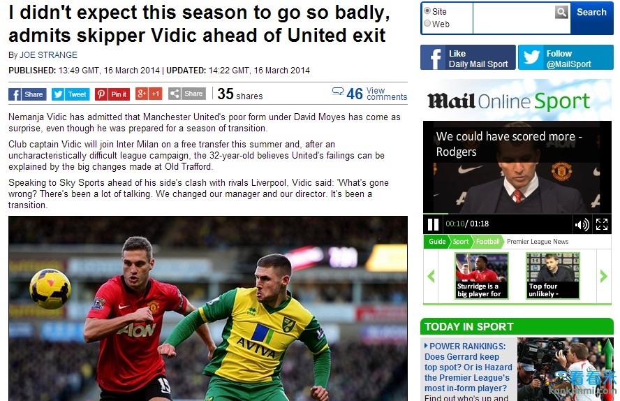 双红会曼联再惨负 队长维迪奇万万没想到过渡期如此不堪