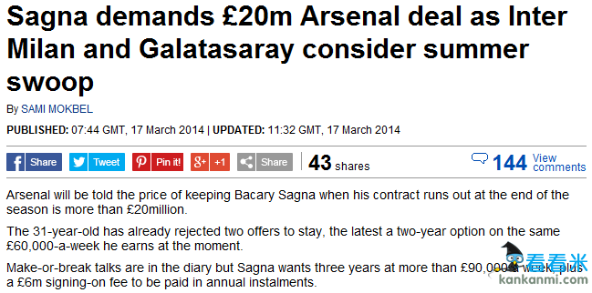 萨尼亚开最后续约条件 阿森纳或将付2000万锁铁卫