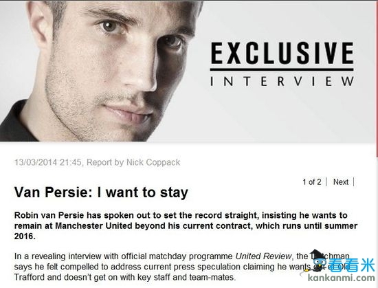 范佩西辟谣:在曼联很开心乐意续约 享受与莫耶斯共事