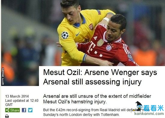 厄齐尔受伤缺席或达六周 阿森纳魔鬼三月再迎考验