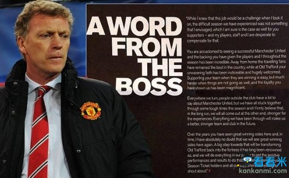 莫耶斯公开信向曼联球迷致歉 有信心能挽回红魔目前颓势