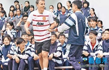 菲利普内维尔香港大秀球技 曼联传奇约战中学生雄风不减