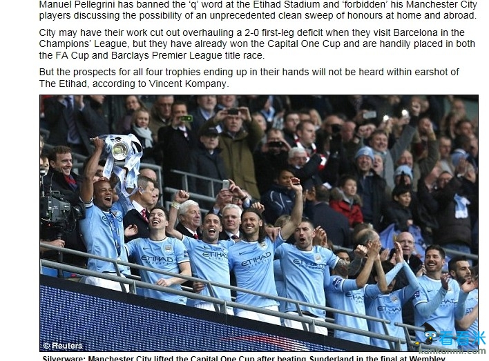 曼城下禁令不准说Q开头单词 佩帅专心比赛免谈四冠王