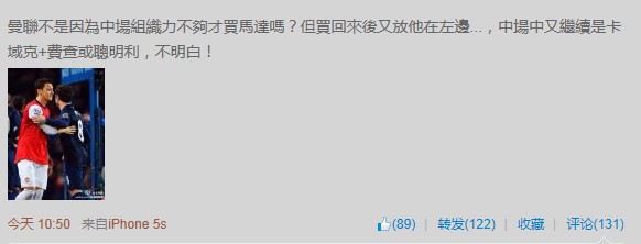 李克勤微博质疑莫耶斯用兵 曼联买来马塔却将他用成废人