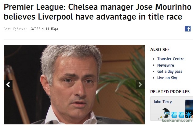 穆里尼奥谈及英超争冠:利物浦无欧战分心占有很大优势