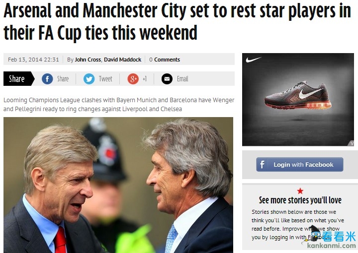 传阿森纳和曼城踢足总杯不派主力 留力欧冠恶战拜仁巴萨