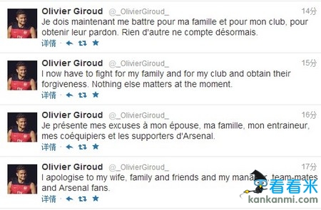 阿森纳锋霸承认偷腥女模! 吉鲁:我愧对妻女温格与球迷