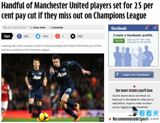 曼联若无缘欧冠资格将损失惨重 球员恐降薪四分之一!