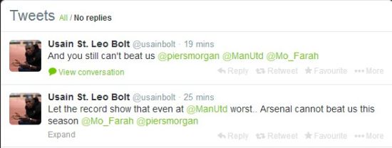 曼联球迷博尔特挑衅阿森纳 史上最渣红魔你们一样赢不了