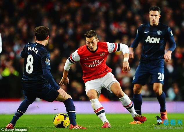 阿森纳VS曼联双核数据:马塔成功传球不到厄齐尔一半