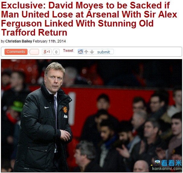 曝曼联若输给阿森纳莫耶斯必下课 弗格森为救火重出山