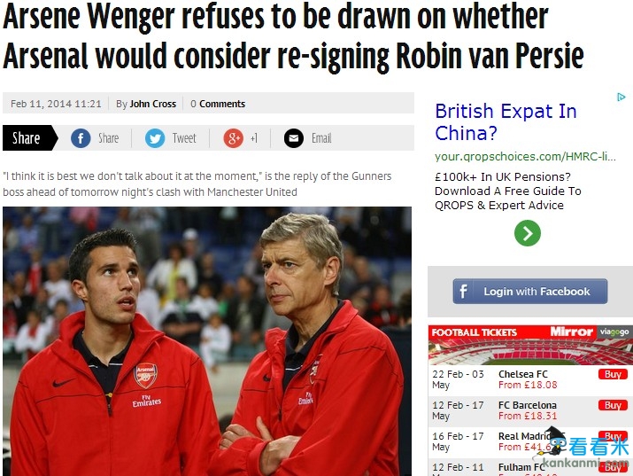 传范佩西重回阿森纳?温格耍起太极:我们还是换个话题