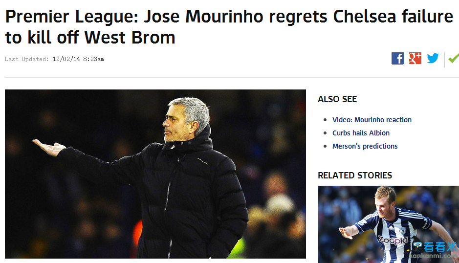 穆里尼奥批评切尔西缺少个性 球队要有杀死比赛的特质