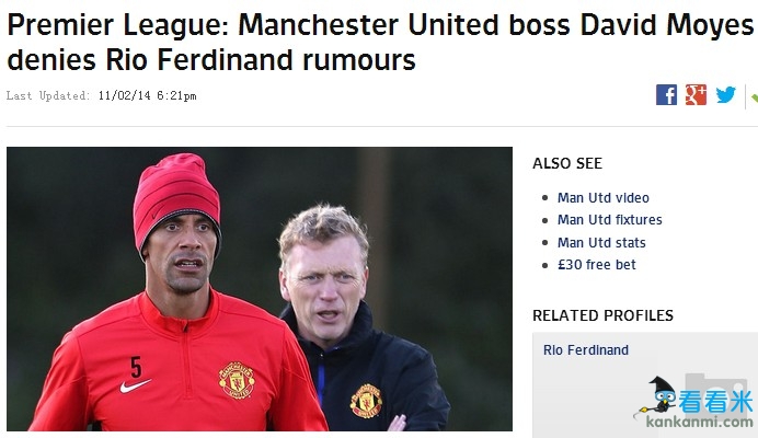 莫耶斯澄清费迪南德没被遗弃 抨击失实报道就是垃圾