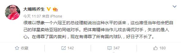 韩乔生惊讶刘永灼言论:六冠王总经理说这种话?