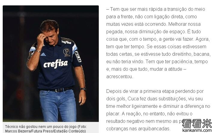 库卡返巴甲执教惨遭2连败 自曝球迷不满轰他回中国